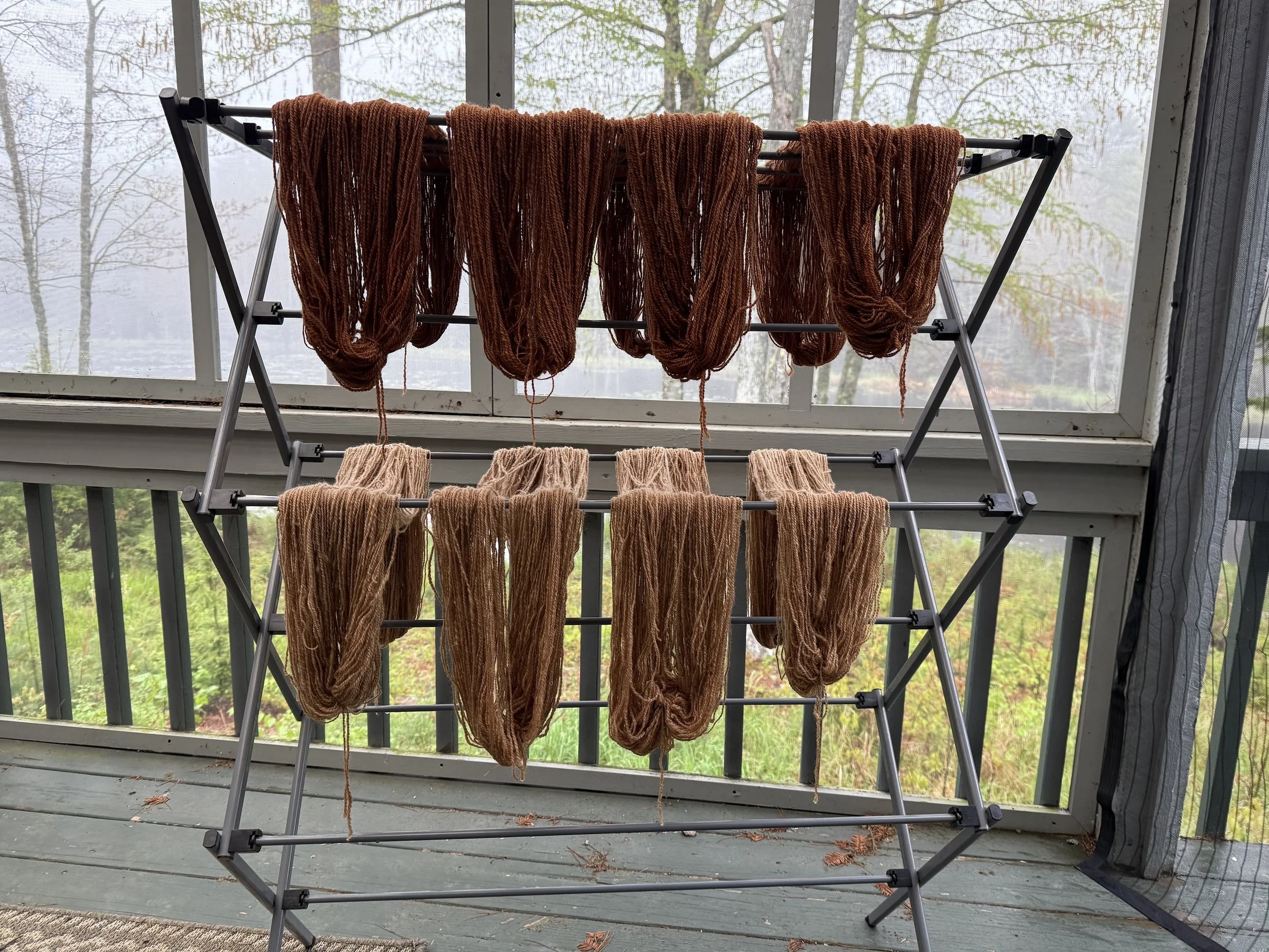 Byre Farm offers yarns from their resident sheep dyed with black walnut husks (in the photo) and goldenrod.